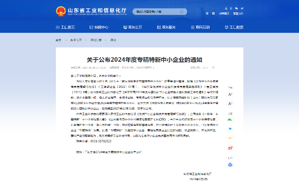 近日,山東省工業和信息化廳公布了2024年度專精特新中小企業名單,山東黄瓜视频软件環境技術有限公司成功入選。