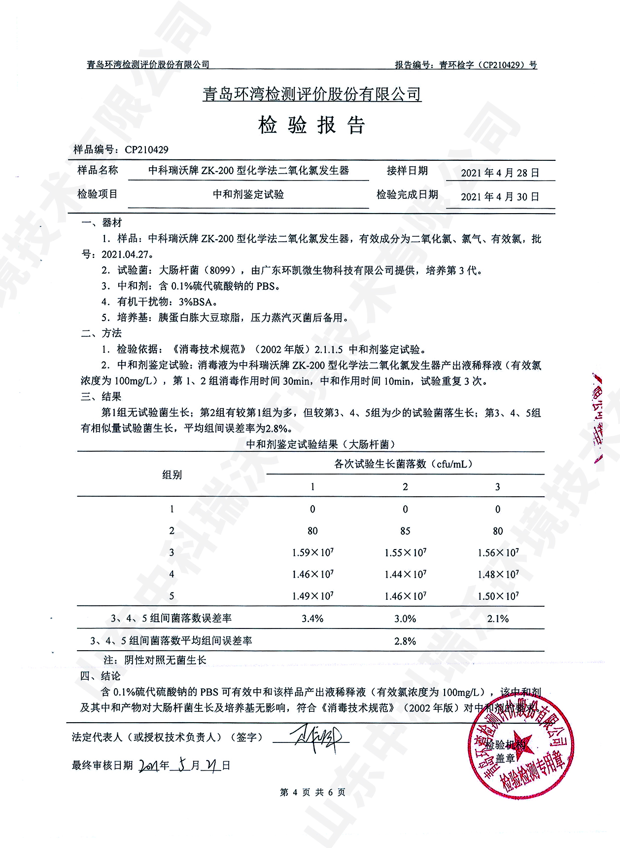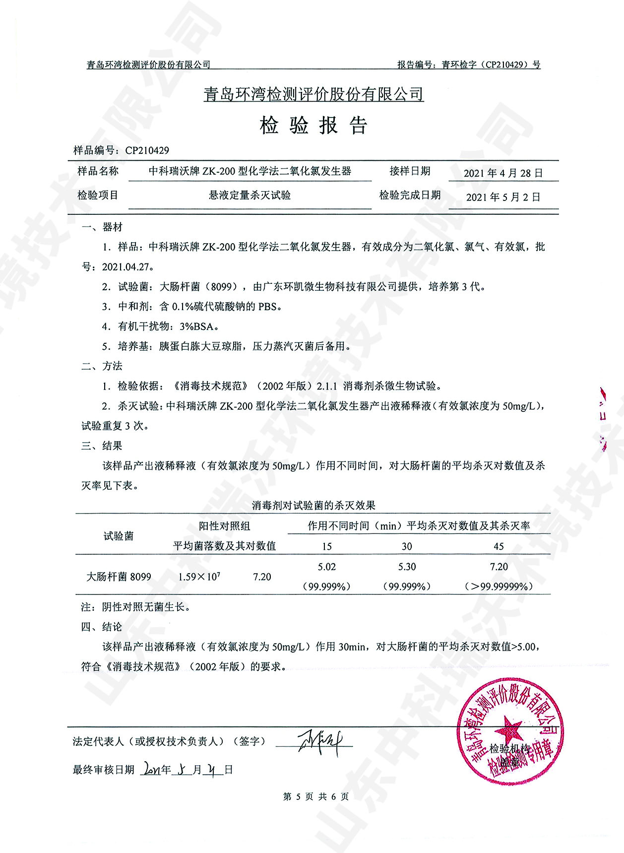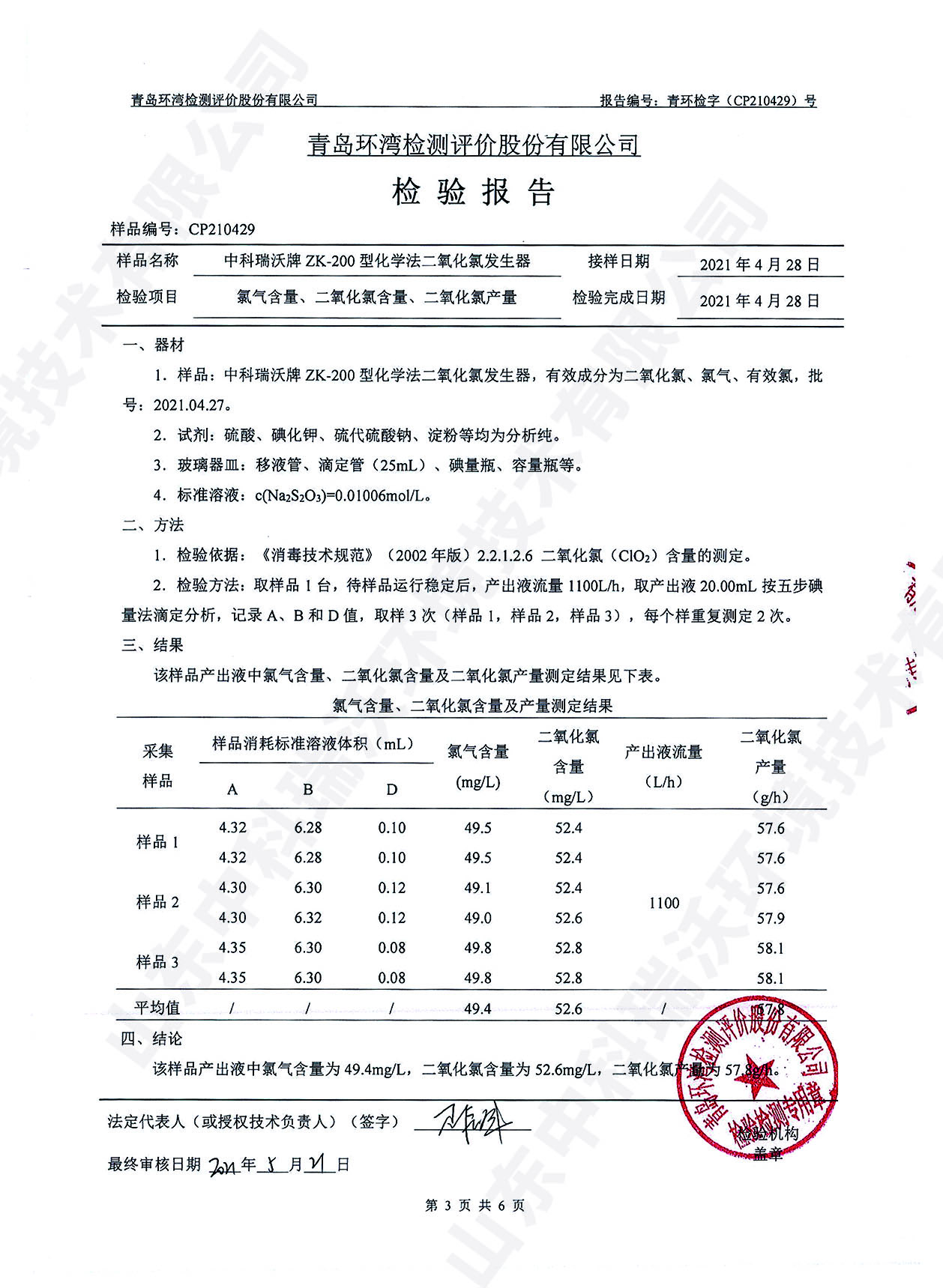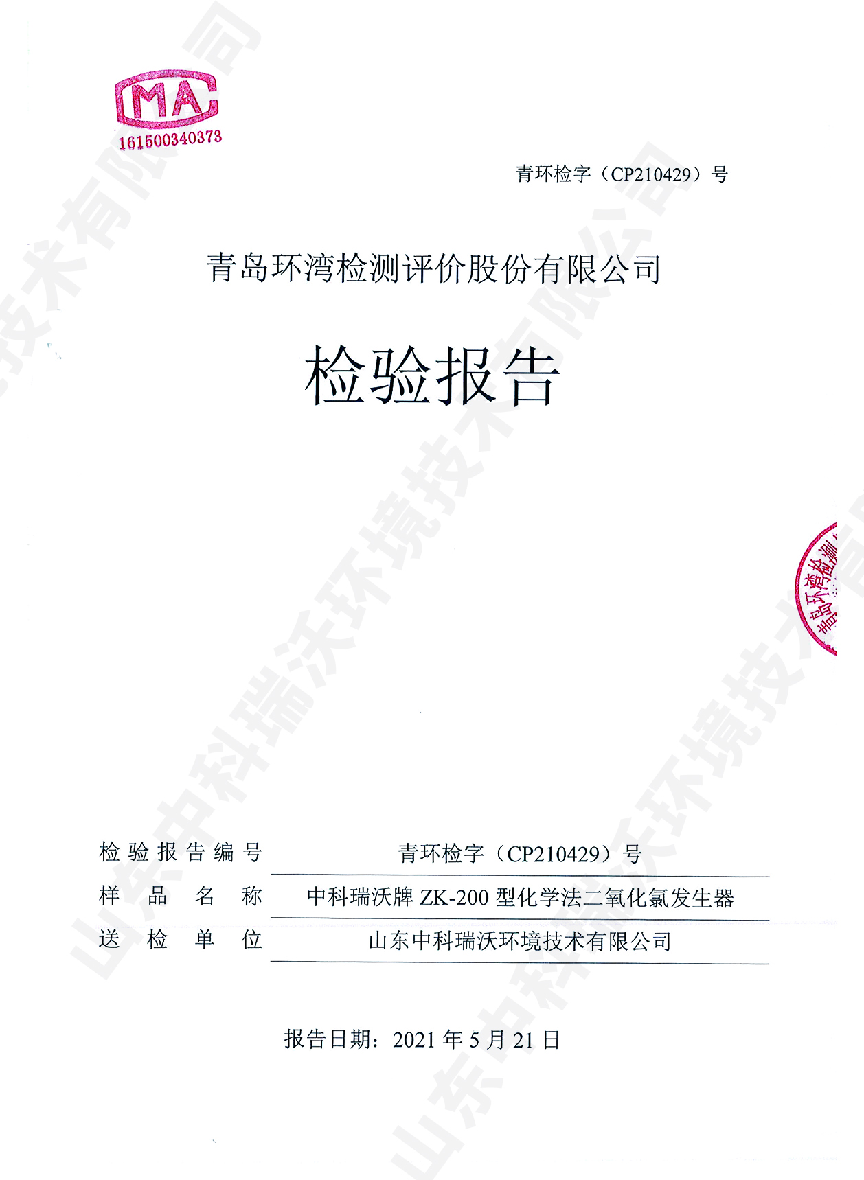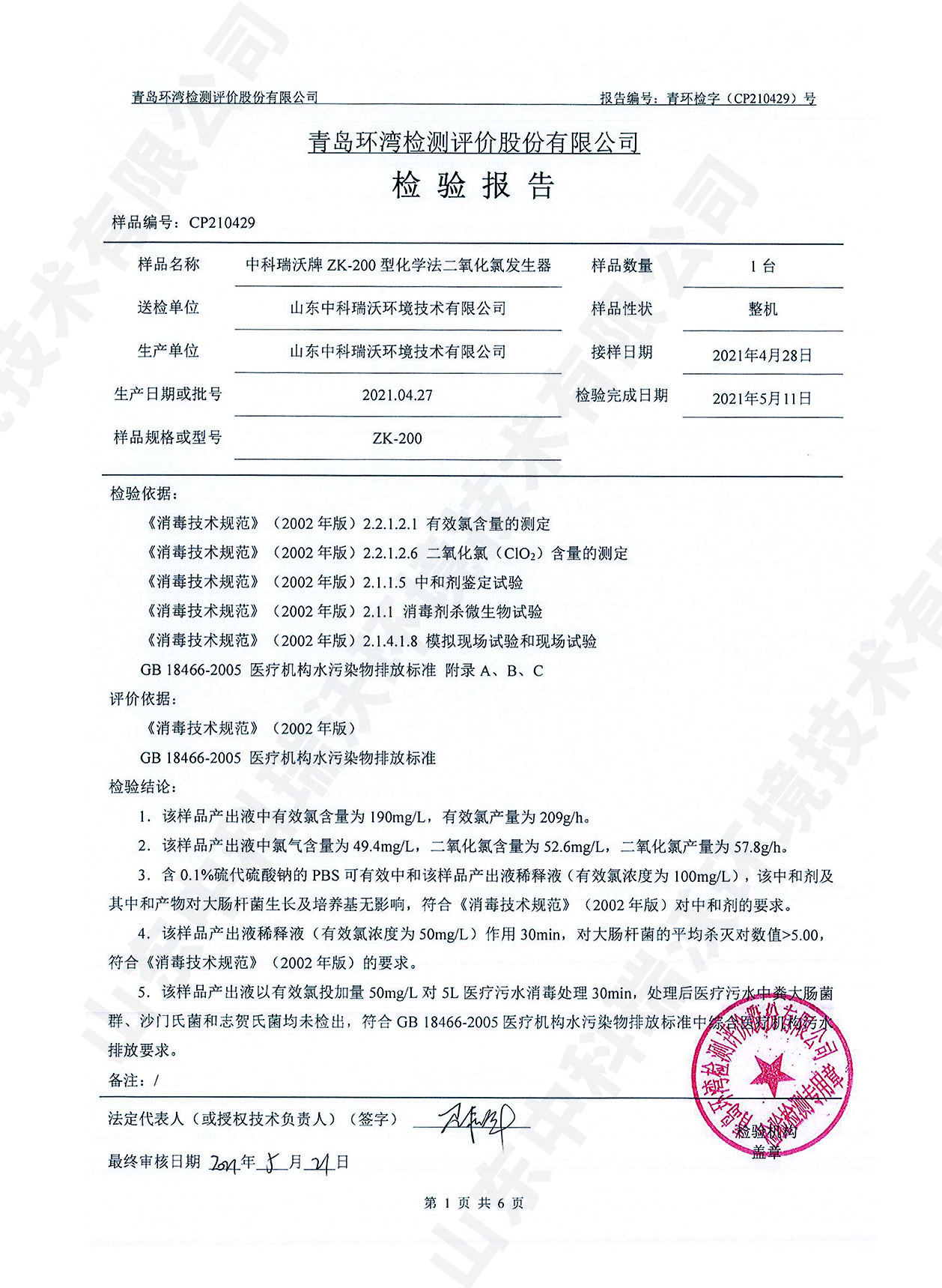 醫療汙水處理設備檢測報告~二氧化氯消毒
